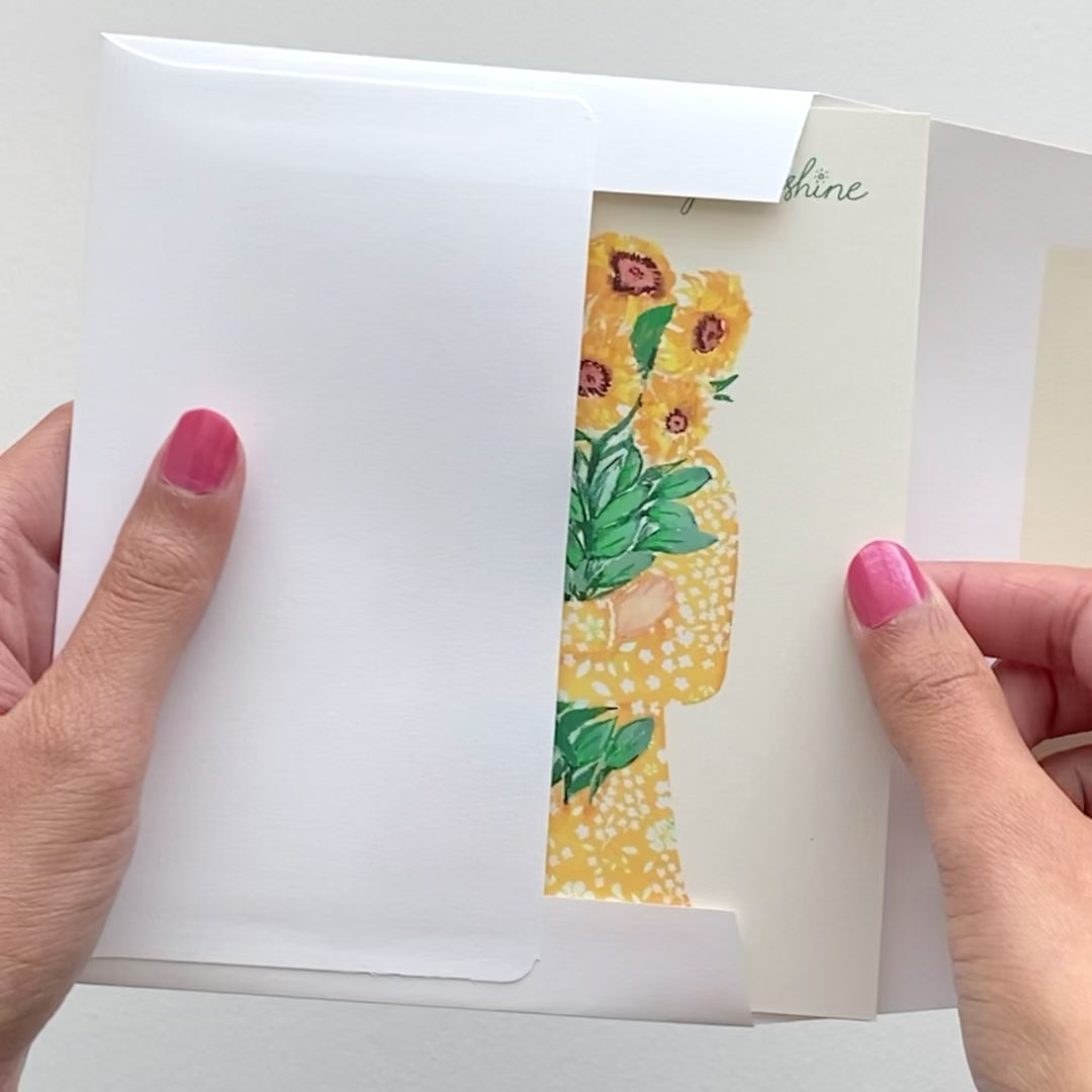 Cards are carefully packaged in a recycled clear box, and shipped in a lovely Nila Skies box. All materials are recylable!