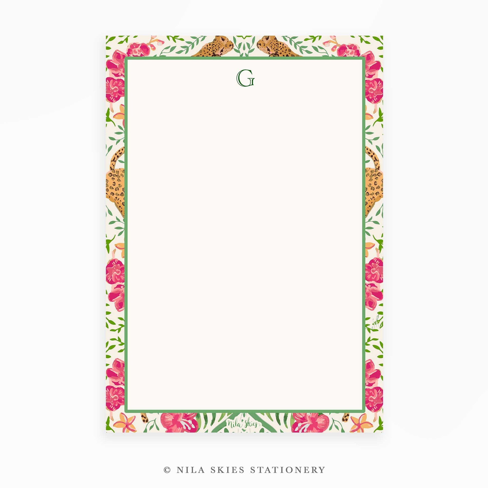 Bring a vibrant leopard pattern to your desk with this playful notepad. This personalized notepad is adorned with an elegant initial and will be perfect for jotting down notes, writing letters, or organizing your thoughts in style. Ideal as a unique gift for anyone who appreciates distinctive stationery. Make a statement with your writing and express your personality with this delightful addition to your collection!